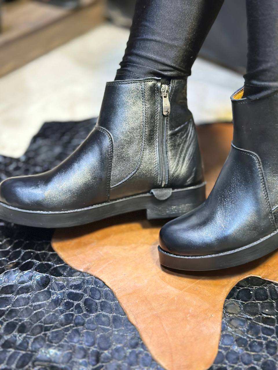 نیم بوت بغل بافت تمام چرم با آستر چرم