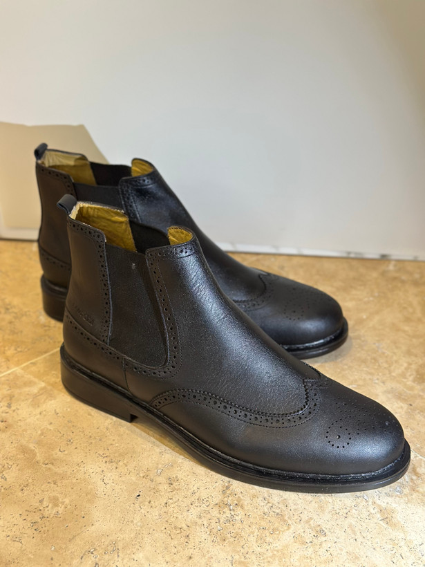 طراحی کشدار کناری باعث پوشیدن و درآوردن آسان شده و فرم استاندارد آن، راحتی پا را در استفاده طولانیمدت تضمین میکند. جزئیات پانچدوزی ظریف (Brogue) روی رویه کفش، جلوهای خاص و کلاسیک به محصول داده است