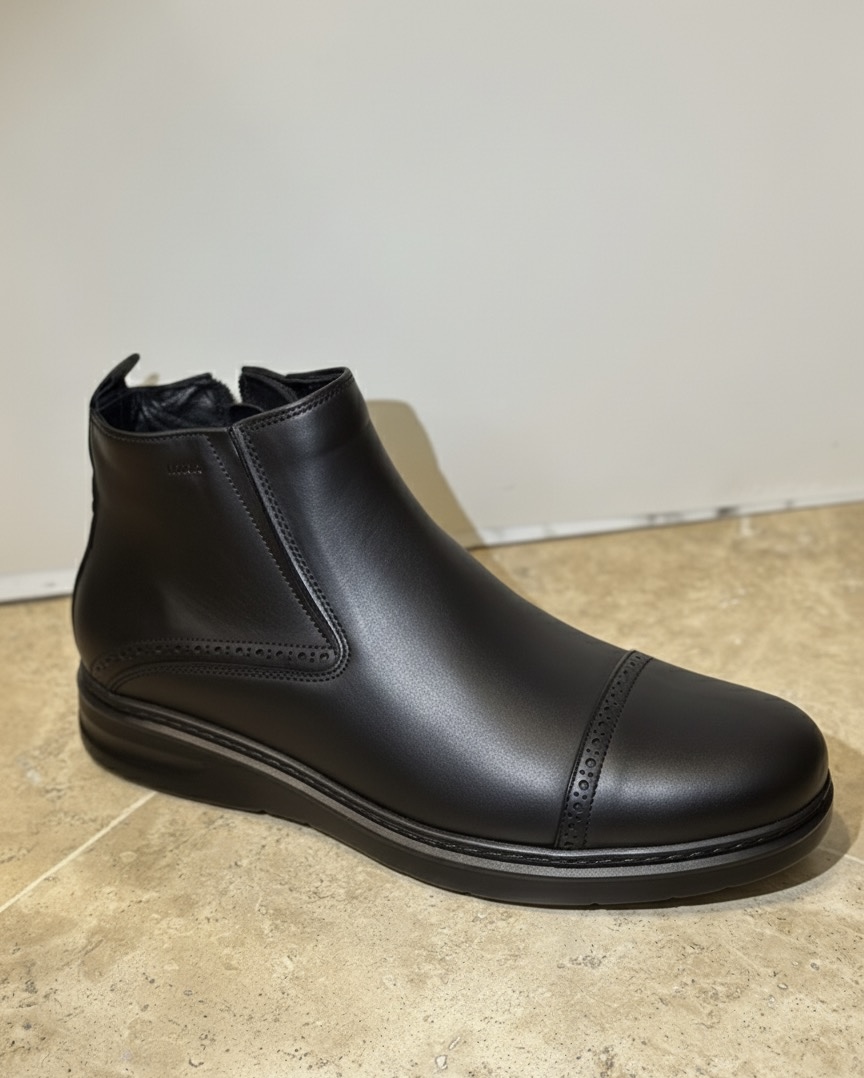 این نیم بوت مردانه کلاسیک با طراحی ساده و شیک، انتخابی ایدهآل برای آقایانی است که به استایل رسمی و کیفیت بالا اهمیت میدهند. رویه کفش از چرم طبیعی مرغوب ساخته شده که علاوهبر ظاهر لوکس، دوام و ماندگاری بالایی دارد